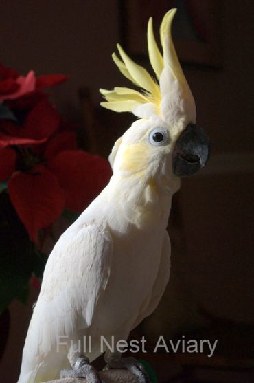 available for sale as pets. We often have African Greys for sale, Cockatoos for sale, and other birds for sale. Feel free to browse around to find out how Full Nest Aviary can help you select the perfect pet bird or help answer